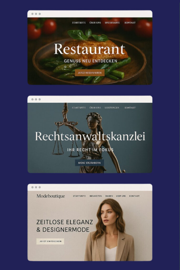Ob Onepager, Portfolioseite oder komplette Unternehmenswebsite – wir begleiten Sie vom Konzept bis zur Veröffentlichung.